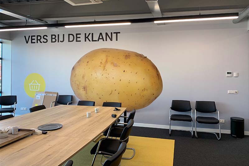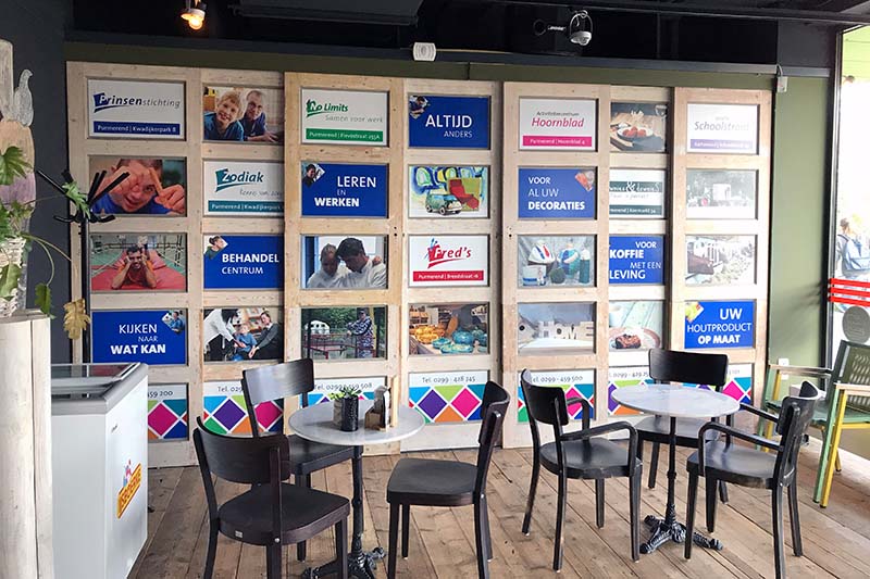 - Interieurbranding met visuals, prints, signage en specials