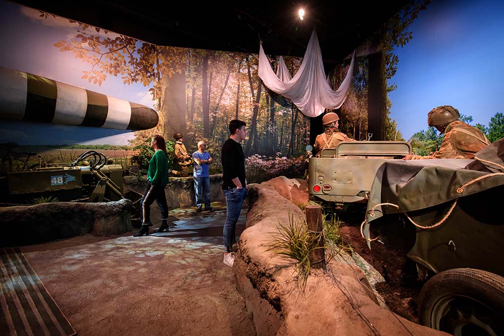 De vernieuwde Airborne Experience (2020) in het Airborne Museum dompelt bezoekers onder in de realiteit van 1944, met intens beeld en geluid. Dankzij onze expertise met full‑color prints zijn de decorelementen van Kloosterboer Decor visueel sterk en naadloos geïntegreerd in de experience.