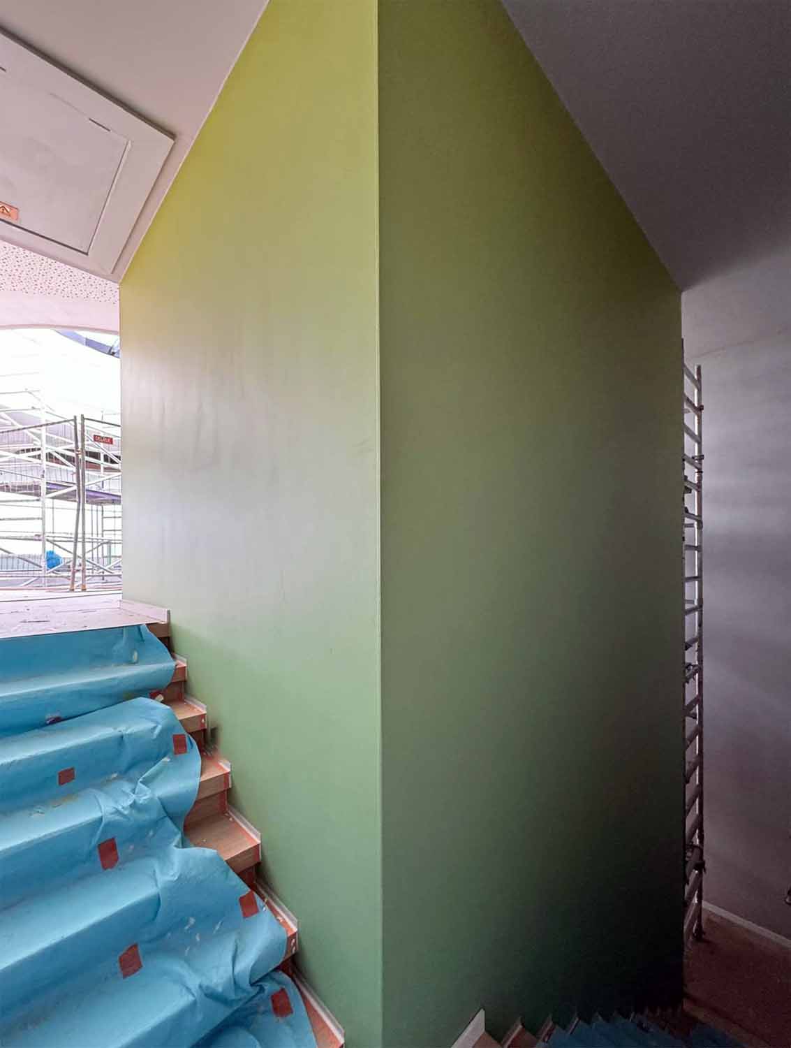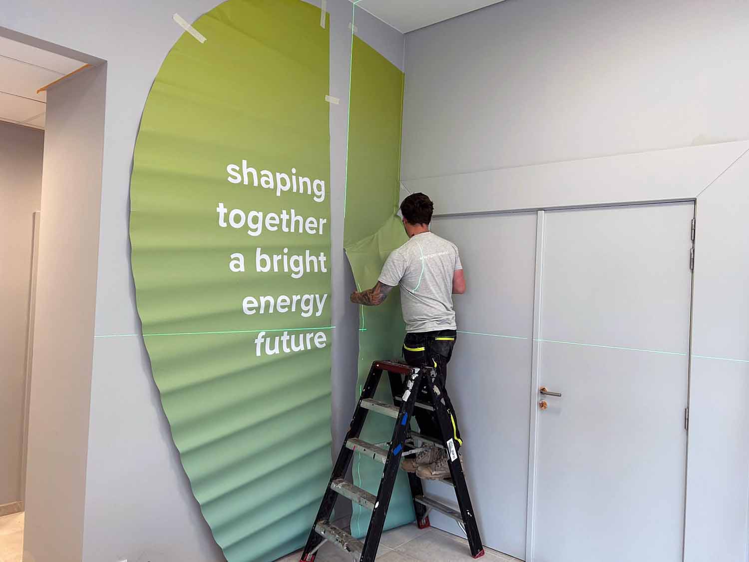 Voor het belevingscentrum realiseerden wij een complete visuele inrichting: we produceerden en monteerden grootformaat verlichte textielframes, verzorgden de volledige wrap van de liftschacht in een kleurrijk kleurverloop, én namen de productie en montage van alle overige grafische elementen voor onze rekening.