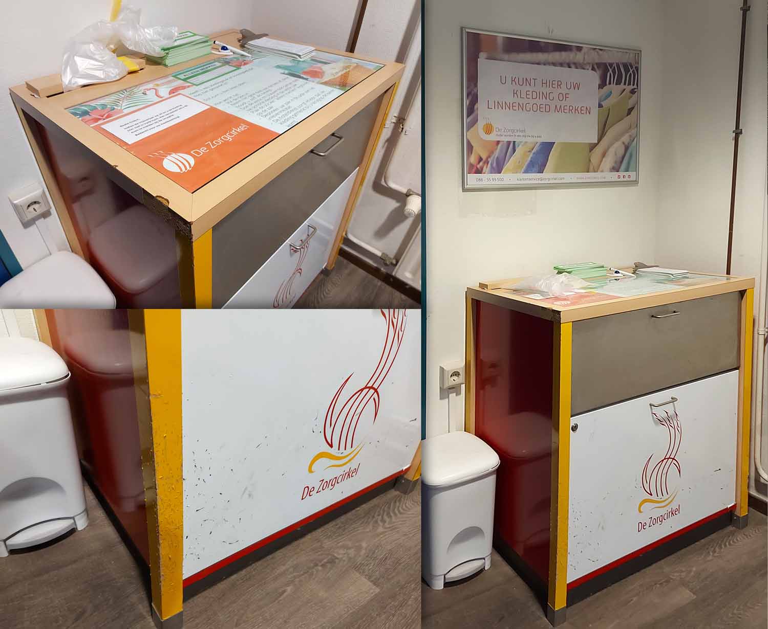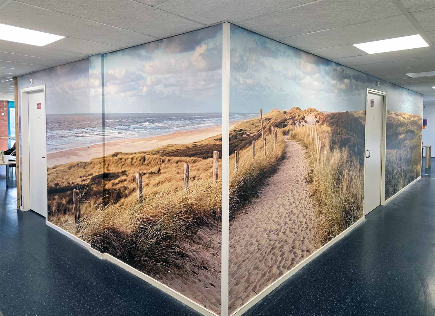Daarnaast hebben we enkele gangen voorzien van full-color geprint behang en kregen verschillende meubelstukken een nieuw leven met decoratieve interieurfolies icm met print of snijfolies.