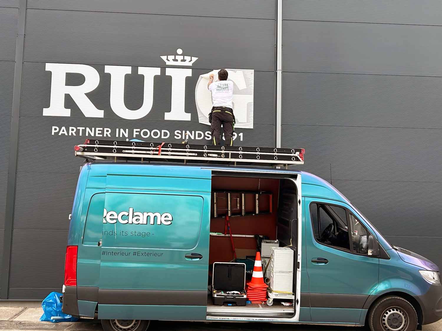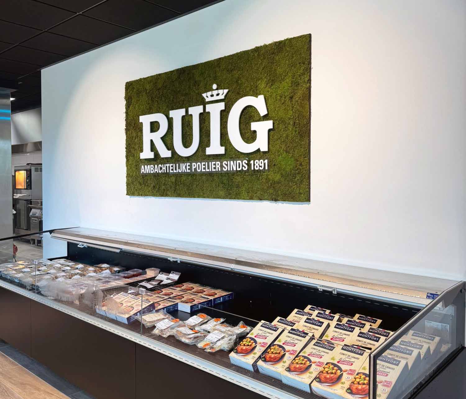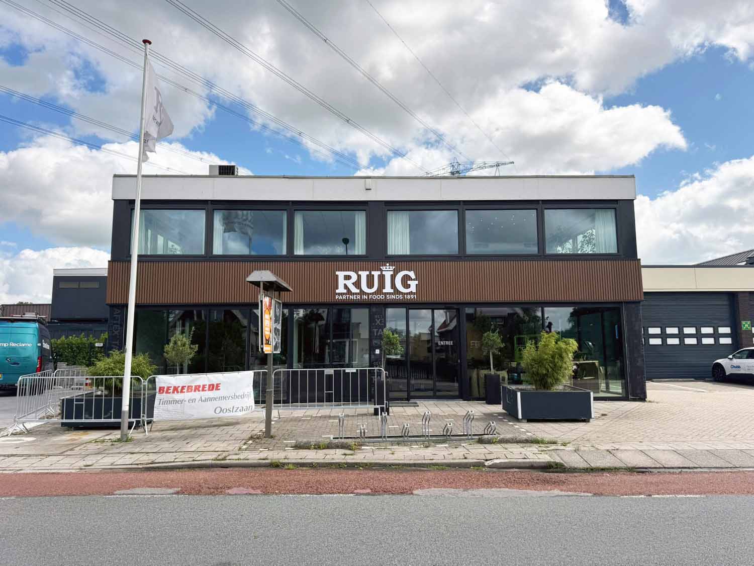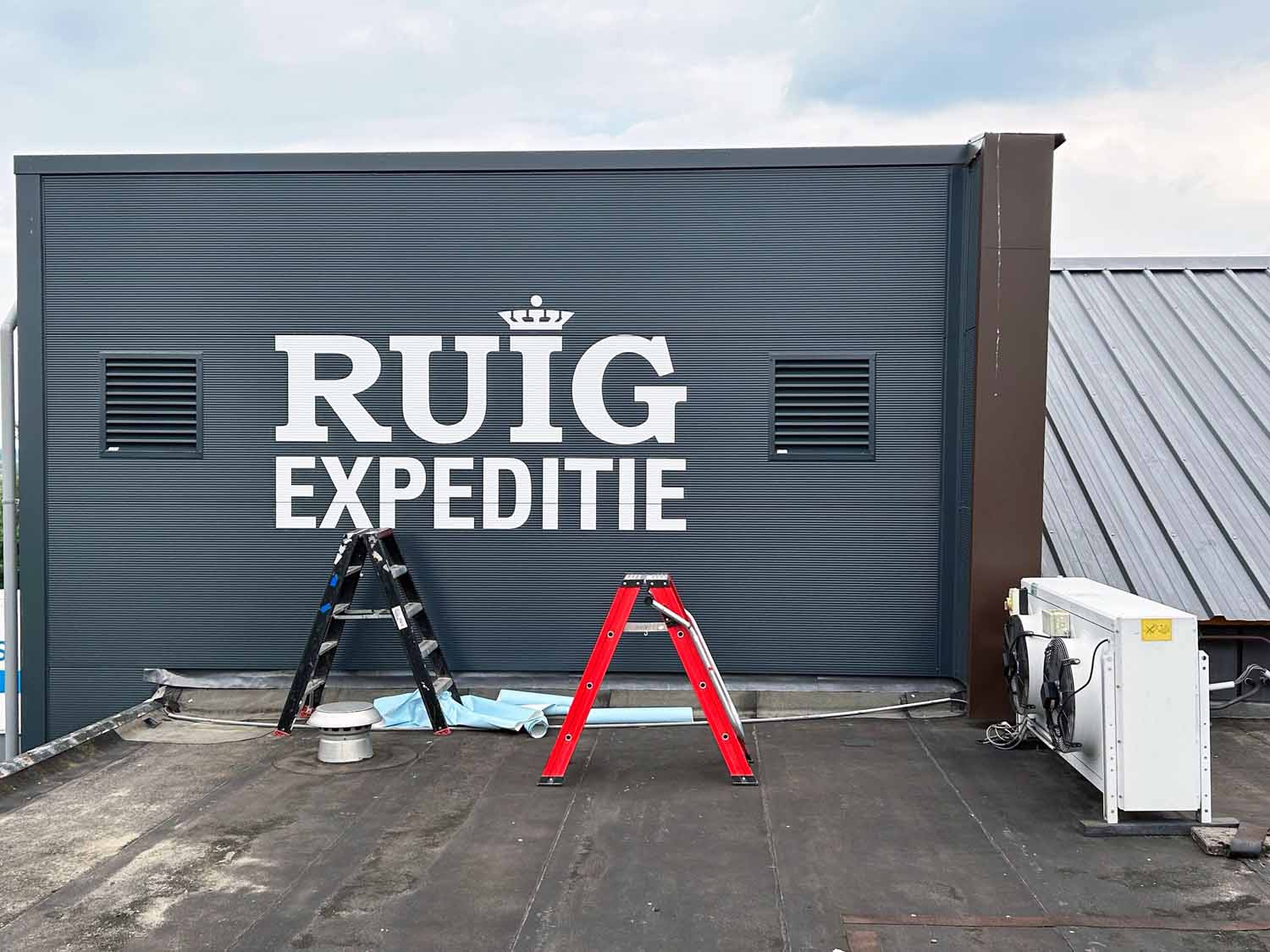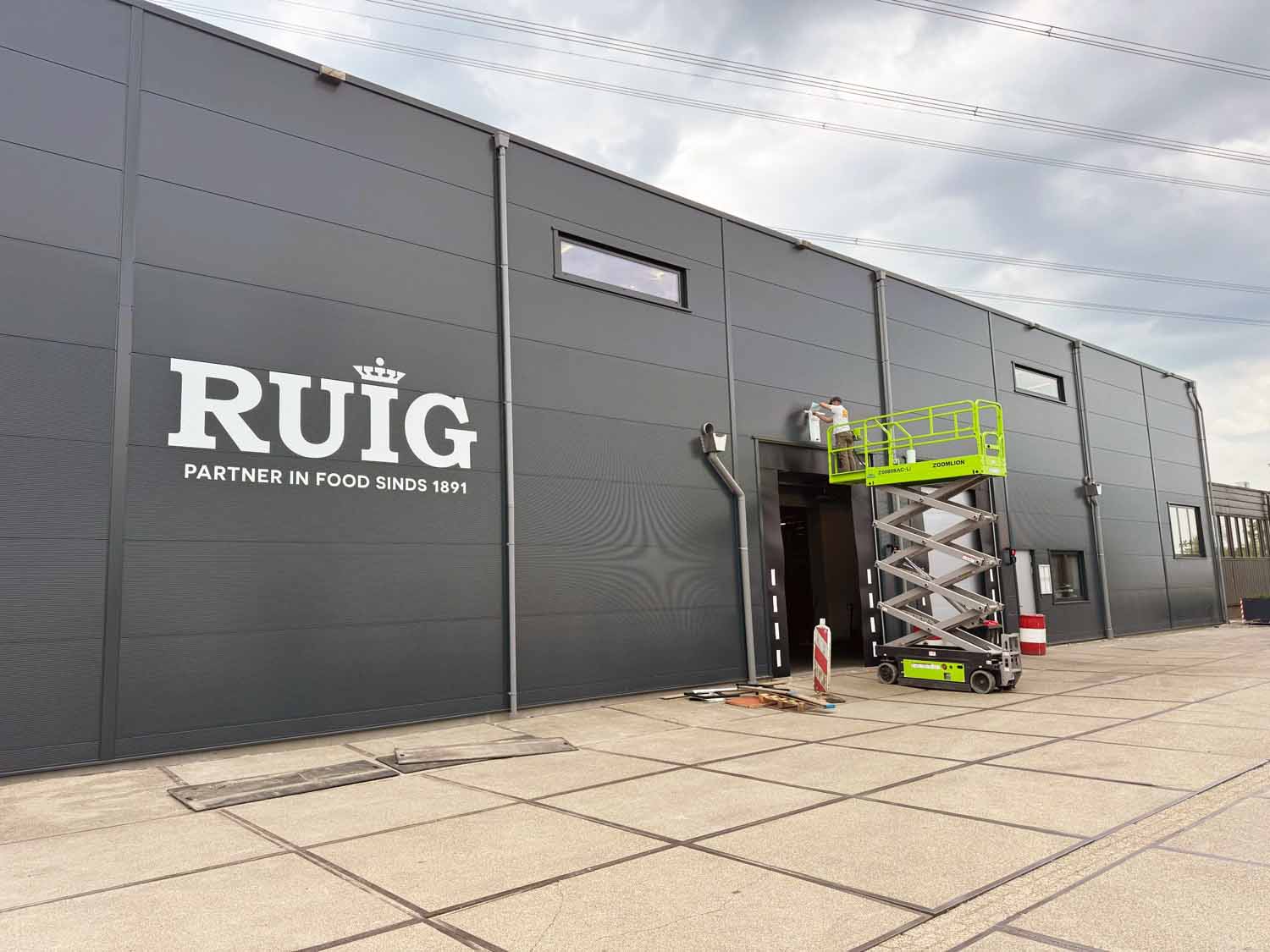 Voor Koninklijke Ruig verzorgden wij de complete rebranding van zowel de winkel als de expeditieruimte in Oostzaan. Aan de gevel brachten wij nieuwe logo-elementen aan: acrylaat letters op afstandhouders voor de winkel, en hoogwaardige folielogo’s voor de expeditie, strak passend bij de nieuwe uitstraling.