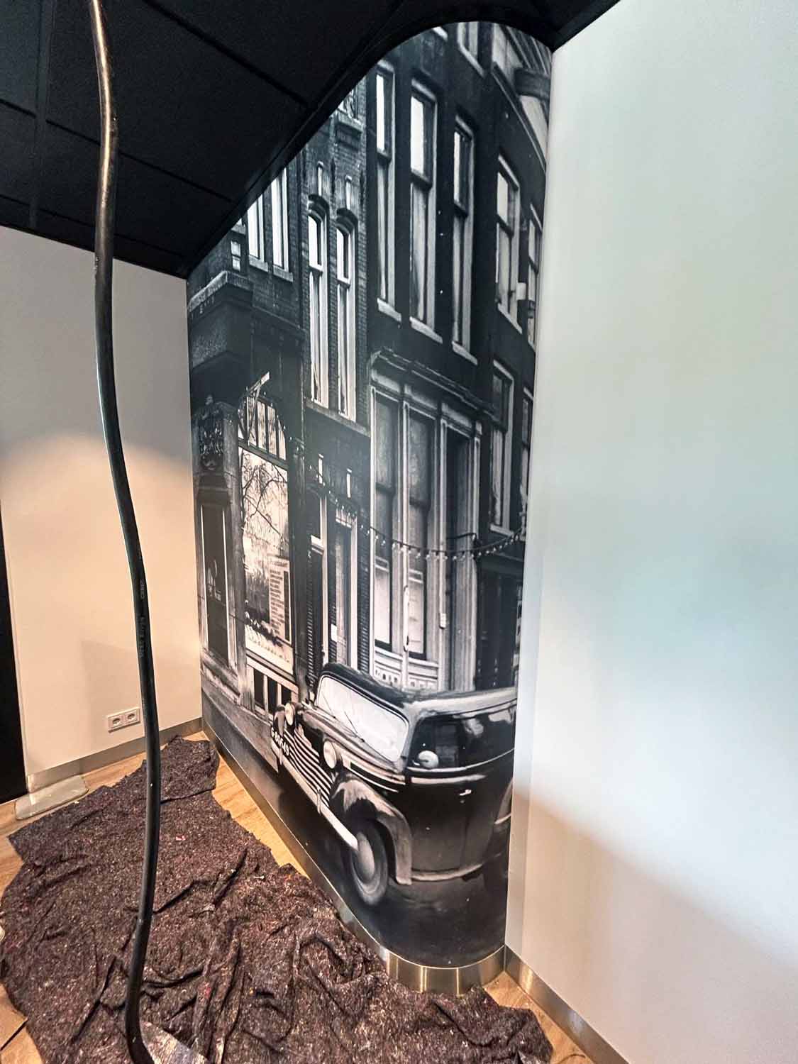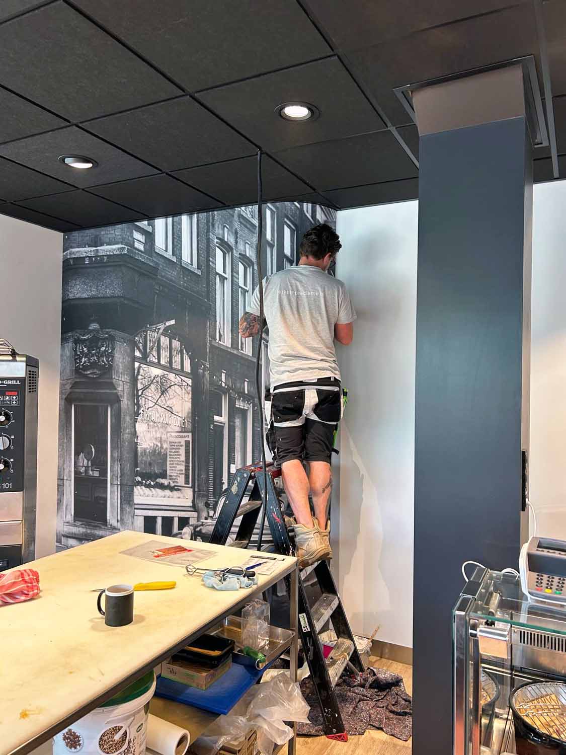 Binnen gaven we het interieur een frisse upgrade met naadloze wandbekleding en een moswand met zwevend logo — een natuurlijke en opvallende eyecatcher die direct sfeer en kwaliteit uitstraalt.