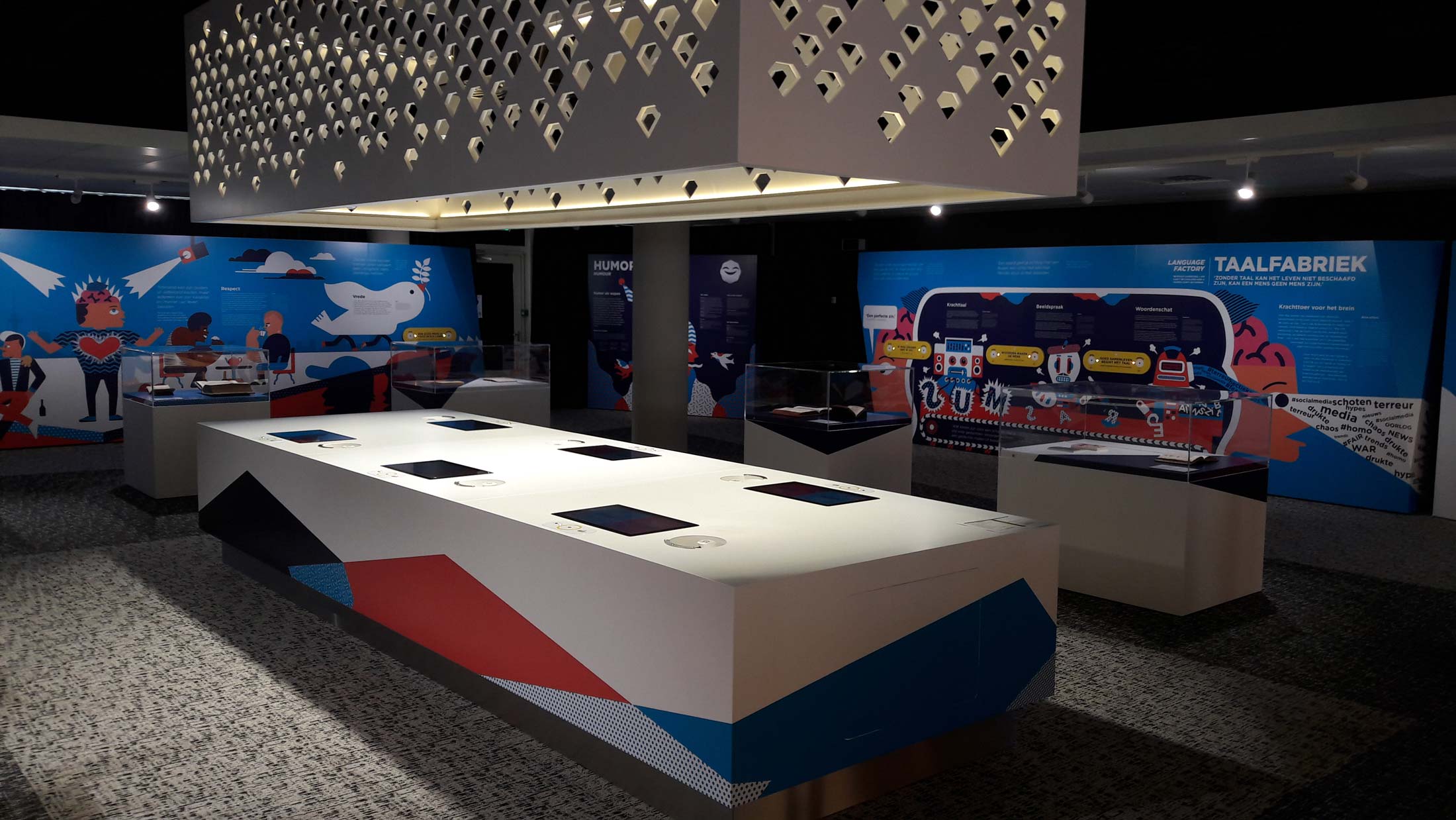 Ons aandeel in deze vaste tentoonstelling is het verzorgen van de meeste grafische uitingen, waaronder het rechtstreeks printen op de eiken houten kasten.