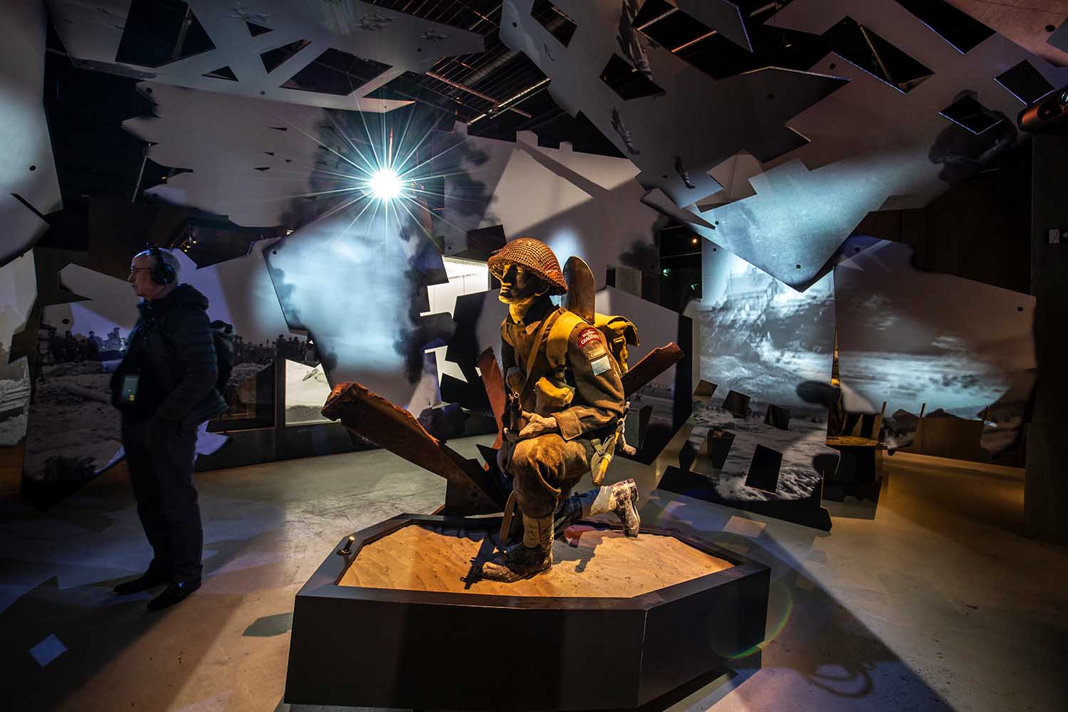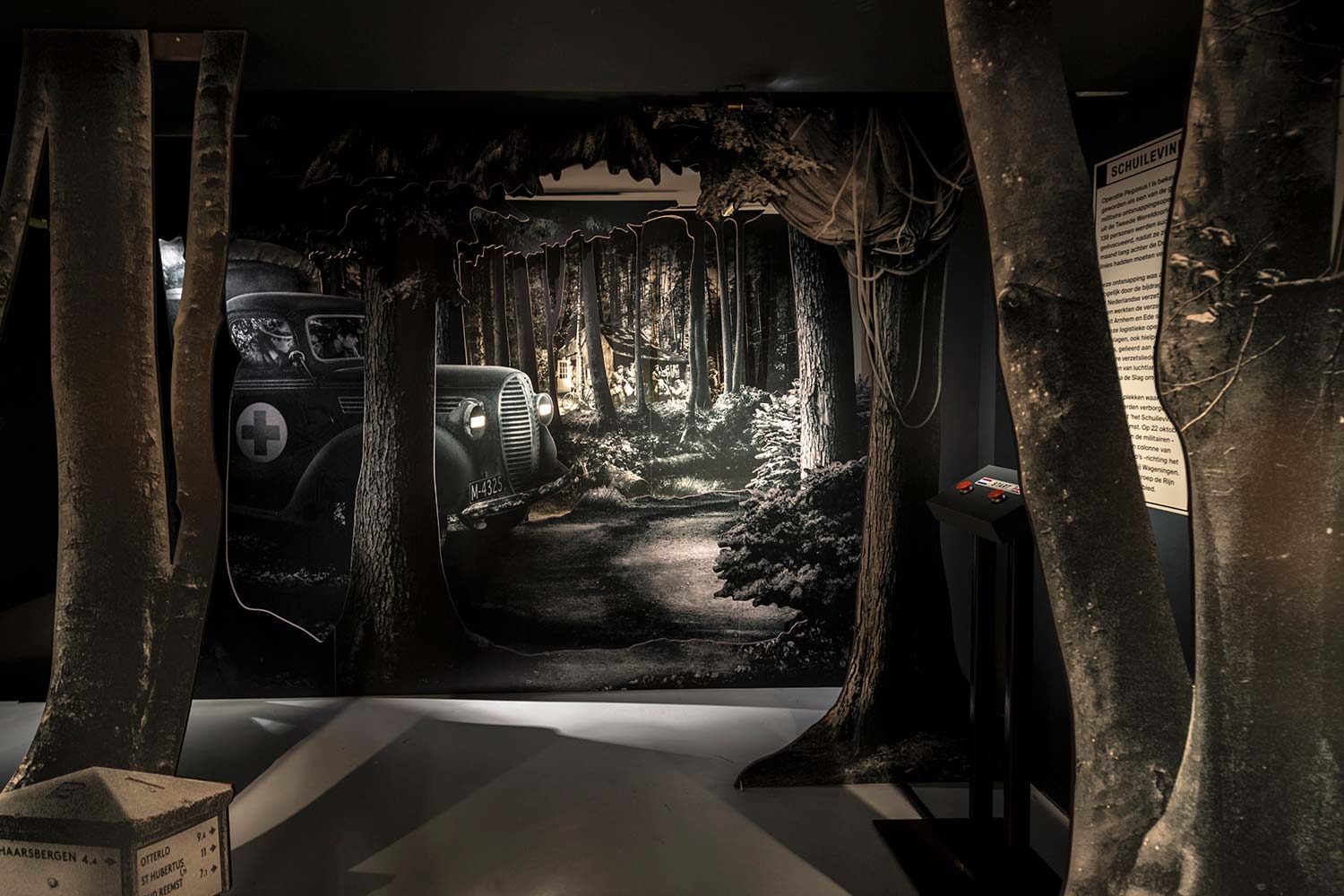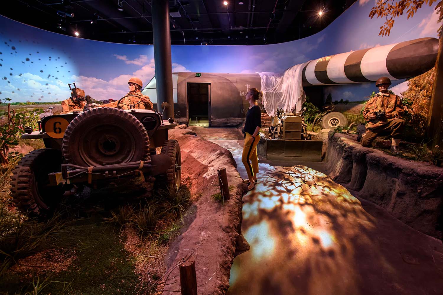 De vernieuwde Airborne Experience (2020) in het Airborne Museum dompelt bezoekers onder in de realiteit van 1944, met intens beeld en geluid.