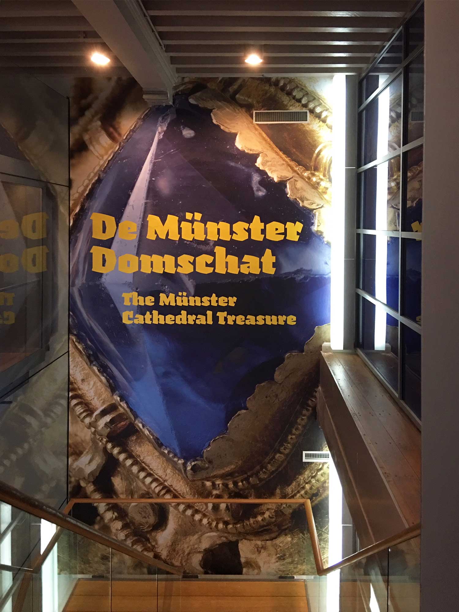 Voor de tentoonstelling ‘De Münster Domschat’ in Museum Catharijneconvent verzorgden wij de volledige visuele communicatie. Van wandbekleding tot vitrine- en wandteksten: alle grafische uitingen zijn door ons geproduceerd, geprint, gesneden en gemonteerd op locatie.