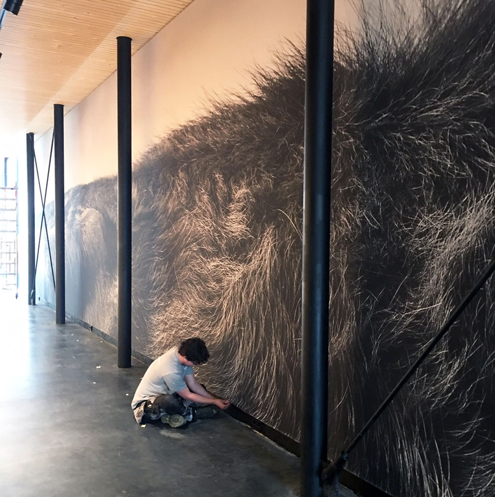 In de aankomsthal van de Hermitage Amsterdam realiseerden wij een indrukwekkende wandvullende print die doorloopt over de ramen.