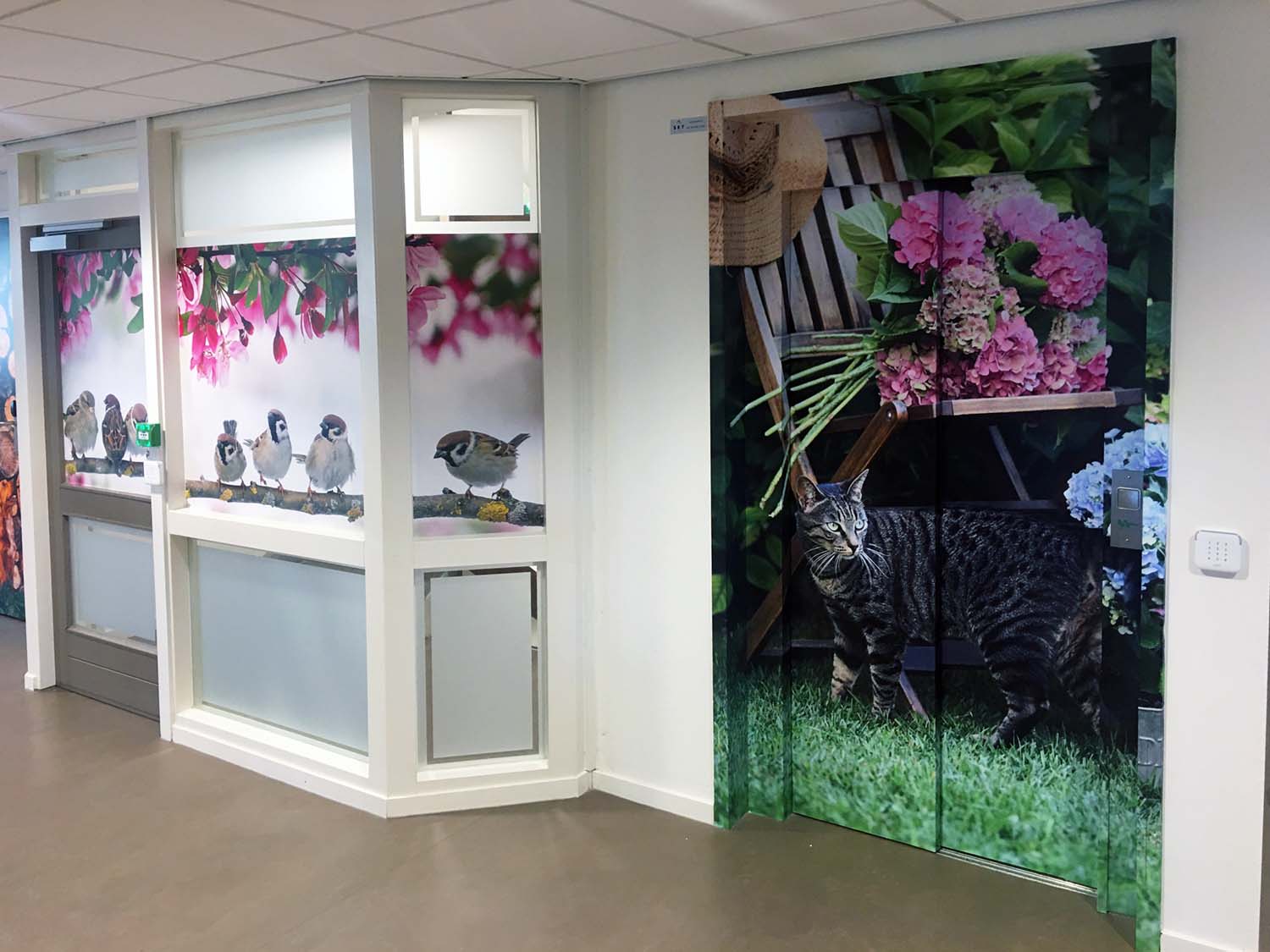 Met regelmaat zijn wij te vinden in diverse zorginstellingen, waar we met onze ervaring en mogelijkheden de ruimtes omtoveren tot een mooiere, prettigere omgeving voor bewoners en bezoekers. In zorginstellingen is herkenning en rust van groot belang.