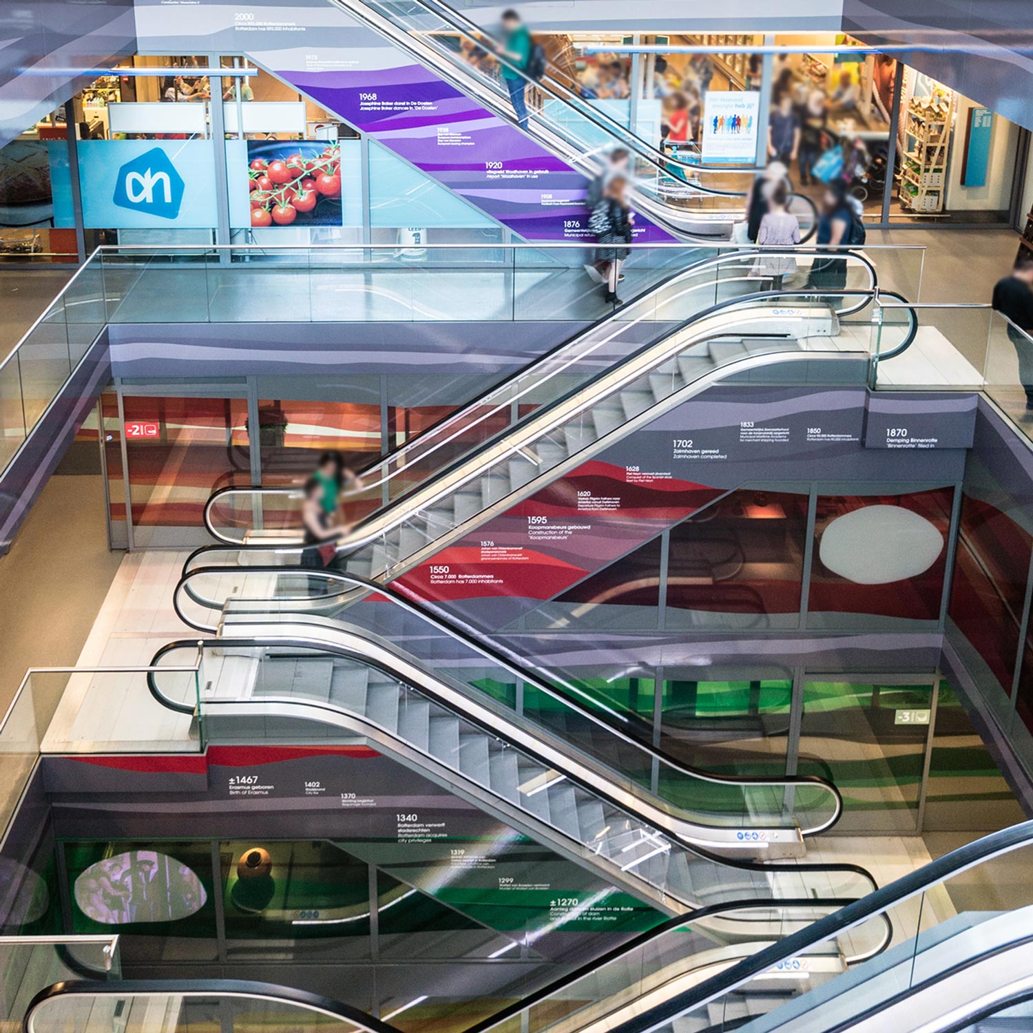 In het European HanseMuseum Lübeck realiseerden wij samen met Tinker Imagineers een indrukwekkende tijdlijninstallatie in een trapgat, verspreid over meerdere verdiepingen.